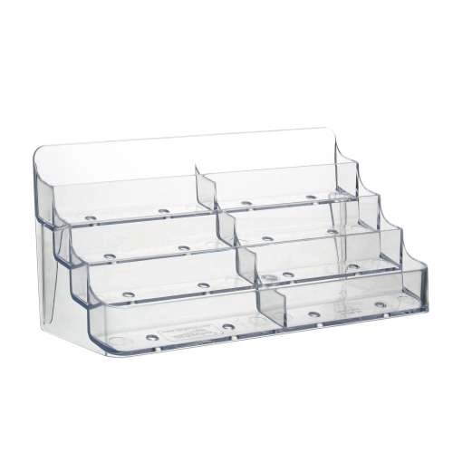 Met onze Meervoudige Visitekaarthouder 8 Vaks zult u uw zakelijke presentatie naar een hoger niveau tillen en een blijvende indruk maken op zowel uw klanten als bezoekers. Aarzel niet en plaats vandaag nog uw bestelling om te ervaren hoe deze houder uw visitekaartjes op een stijlvolle en goed georganiseerde manier presenteert, zodat ze altijd direct beschikbaar zijn om mee te nemen. Of het nu gaat om de presentatie van uw visitekaartjes op een beurs, in een showroom, bij een adviesbalie, of als een gewaardeerd relatiegeschenk, deze Meervoudige Visitekaarthouder 8 Vaks biedt de ideale oplossing voor een opvallende en georganiseerde presentatie.